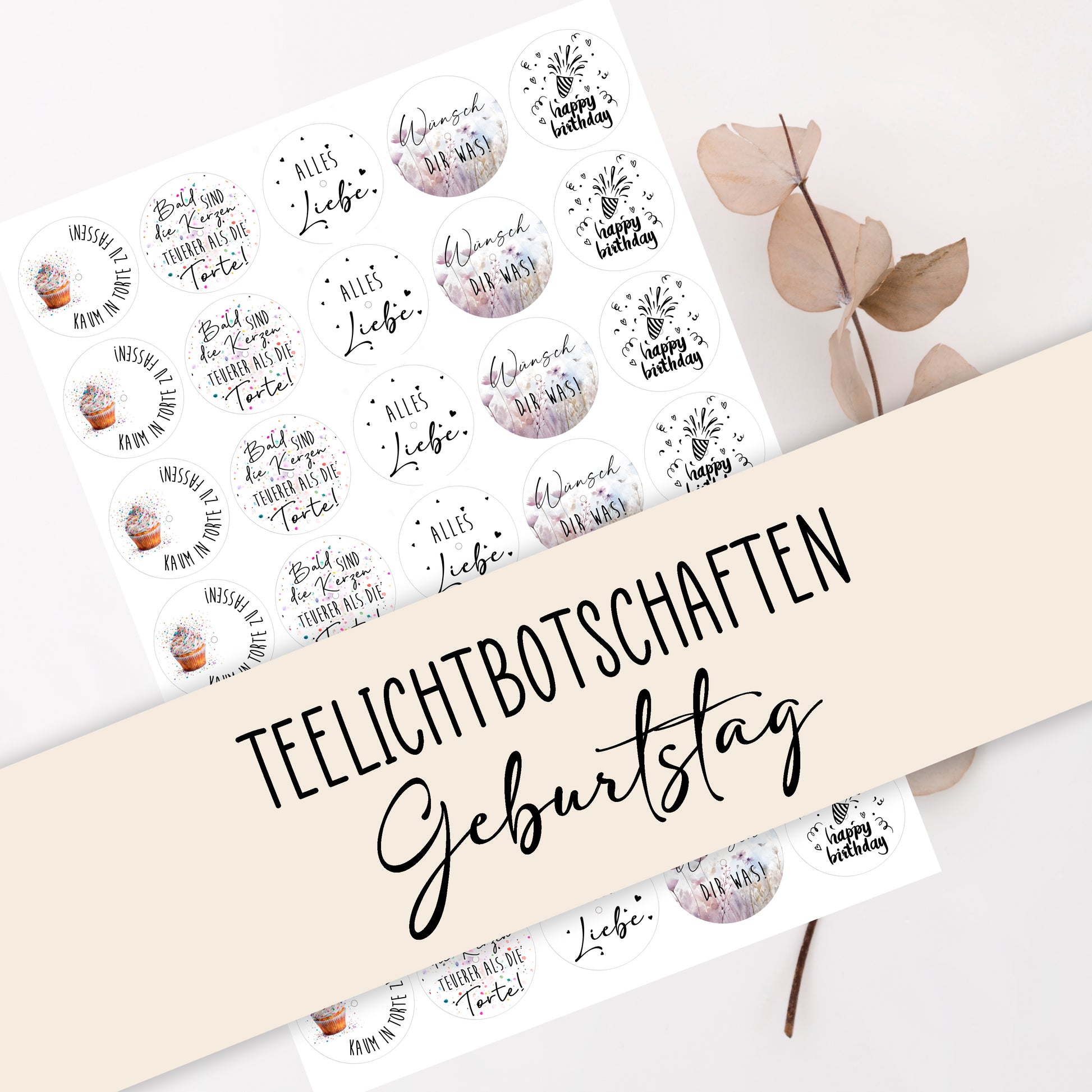 PDF Vorlage Teelichtbotschaften "Geburtstag"