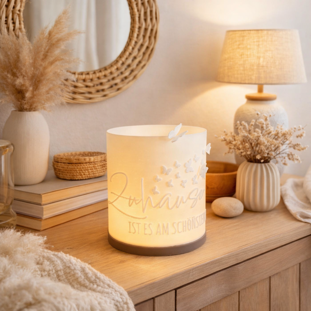 Nachhaltigkeit: Dieses Windlicht wird aus PLA gefertigt, einem biologisch abbaubaren Material, das aus nachwachsenden Rohstoffen wie z.b. Maisstärke gewonnen wird. Damit setzt Du ein Zeichen für den Umweltschutz und reduzierst Plastikmüll.